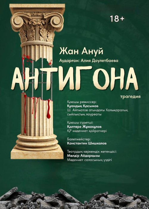 Жан Ануйдің «Антигона» трагедиясы - көне грек мифінің заманауи интерпретациясы. Француз драматургі Софоклдың классикалық туындысына негізделе отырып, екінші дүниежүзілік соғыс тұсындағы адамның ішкі еркіндігі мен билікке қарсылығын жаңаша сипаттайды. Антигона - ар-ождан мен әділдік үшін күресуші, ішкі сенімінен айнымаған қайсар бейне. Ол мемлекеттің заңына емес, адамгершілік ұстанымға бағынады. Ал Креон - тәртіп пен тұрақтылықты қорғаушы билік иесі. Ануй туындысында кейіпкерлер тек ақ пен қараға бөлінбейді, әрқайсының әрекеті терең психологиялық және философиялық мәнге ие. Пьеса - еркіндік, таңдау және адам болмысы жайлы драмалық толғаныс.
