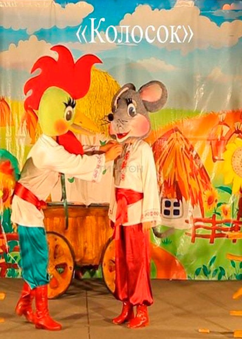 Петушок и Мышонок… Трудолюбивый Петушок и любящий только играть Мышонок… Простой сюжет поучительной истории для самых маленьких зрителей. А если добавить колорит украинской народной сказки, много музыки и участие в действии самых маленьких зрителей, то получится настоящий музыкальный спектакль «Колосок».